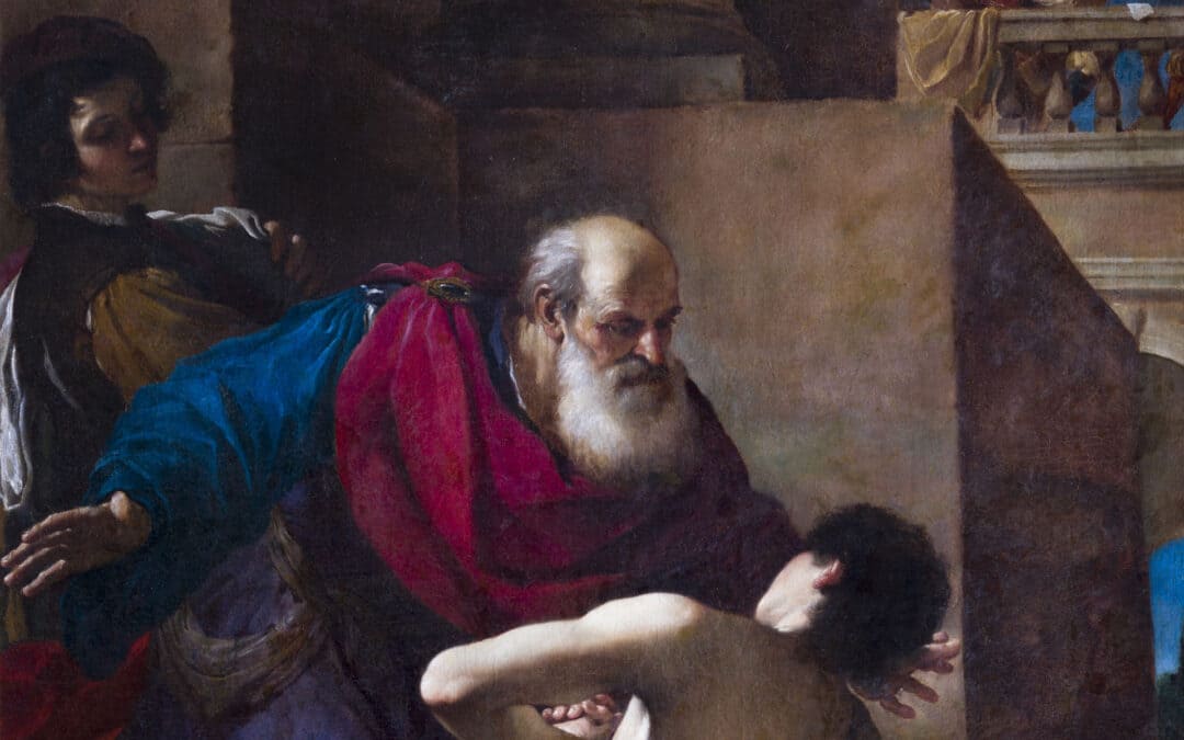 The seventeenth century takes to the extreme the taste for the depiction of the affections, the heated gestures, the close and engaging vision of events, and Guercino is a true master in this, both in the rendering of figures and in painting the richly detailed scenic apparatus.